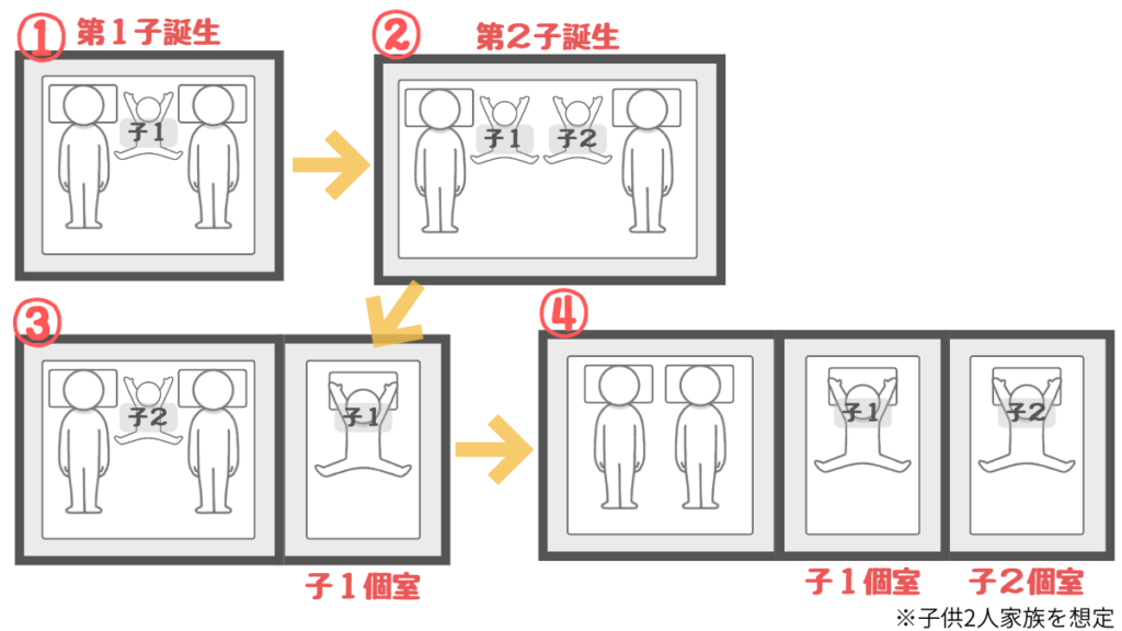 ④子供2人とも個室で寝る:寝室+子供部屋2