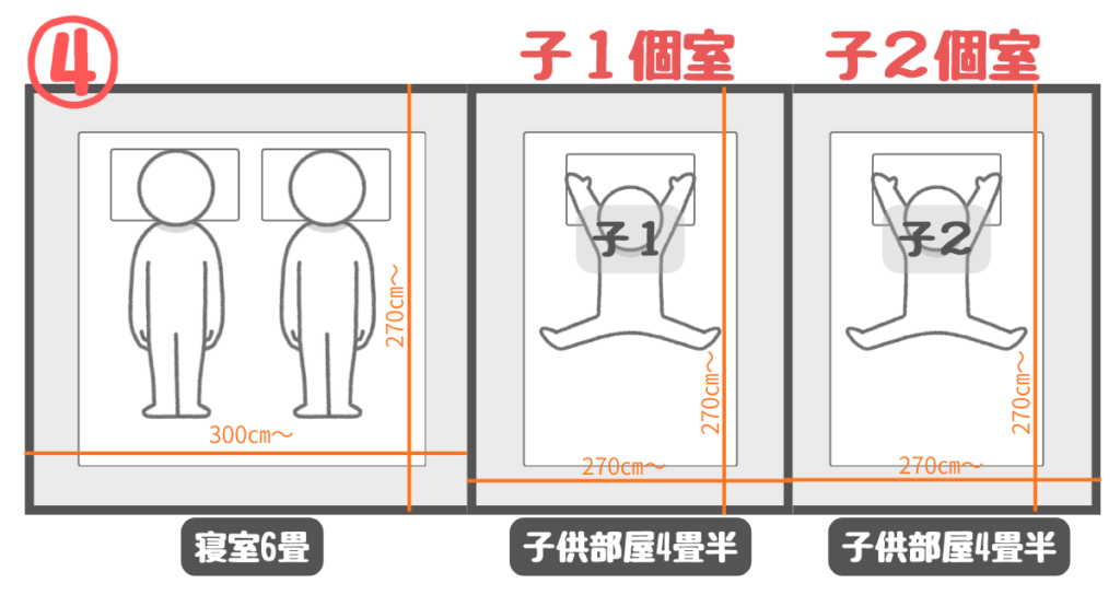 ④子供2人とも個室で寝る:寝室+子供部屋2