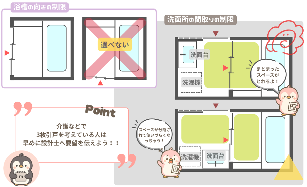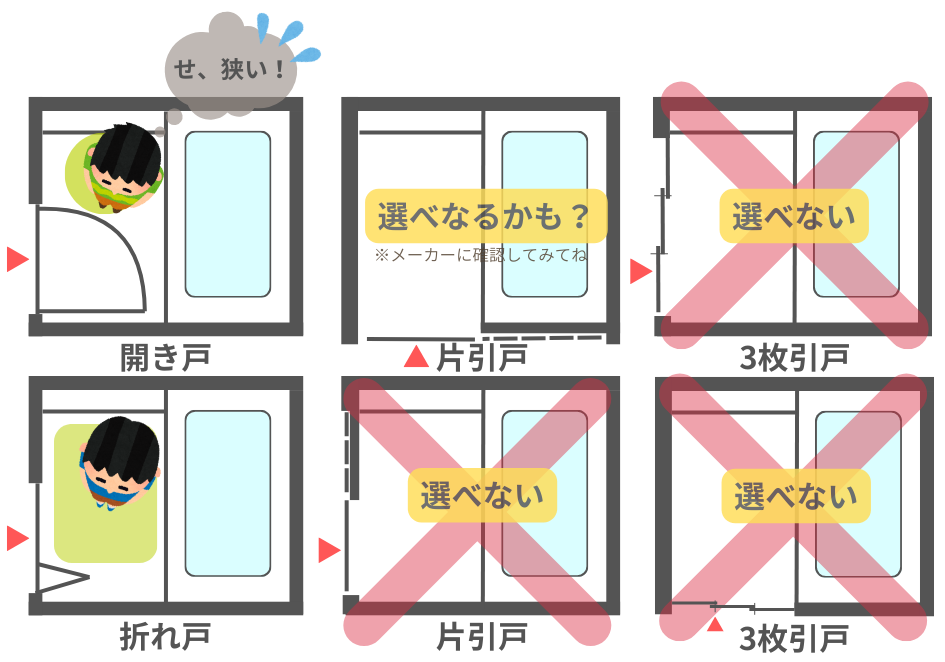 ※浴槽の向き次第では引戸や3枚引戸は選べない場合があります(メーカーによる)