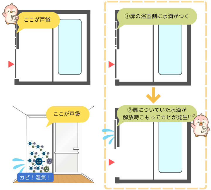 そのため、介護や複数人でお風呂に入る家庭ではドアをよける必要があるので一苦労してしまうかも…