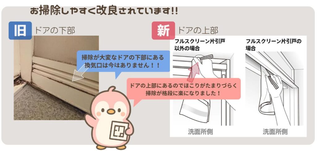 掃除のしやすいように折れ戸も改良されているので安心してください!