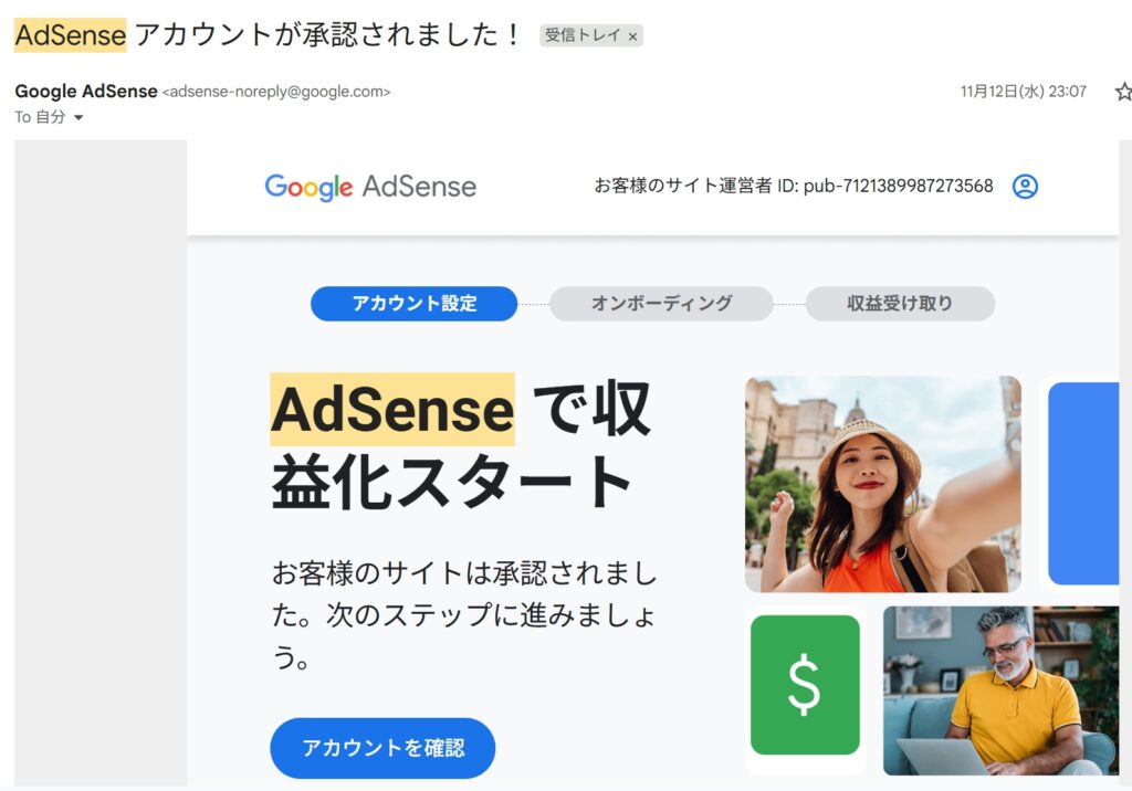 11/12 アドセンス審査合格!!