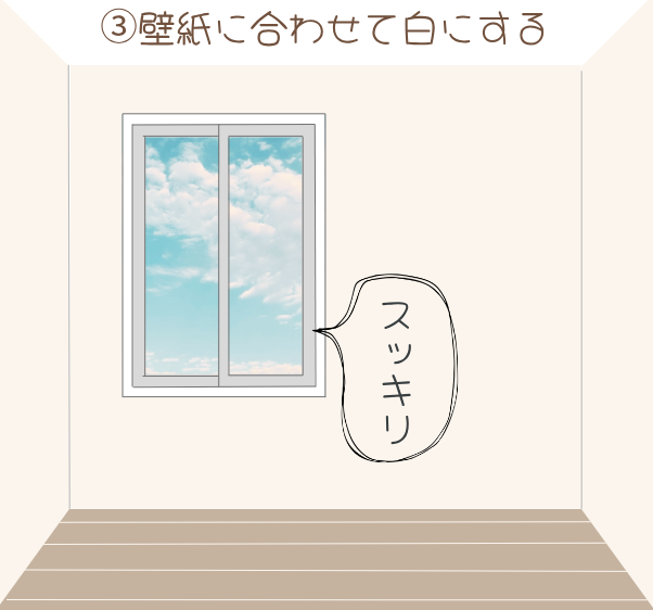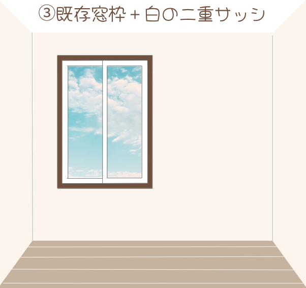 ①②のように色が合わせられないときは③の二重サッシのみ白にするとスッキリ見えます!