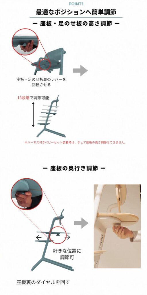 成長に合わせて高さを調整できるのが理想なんですが
