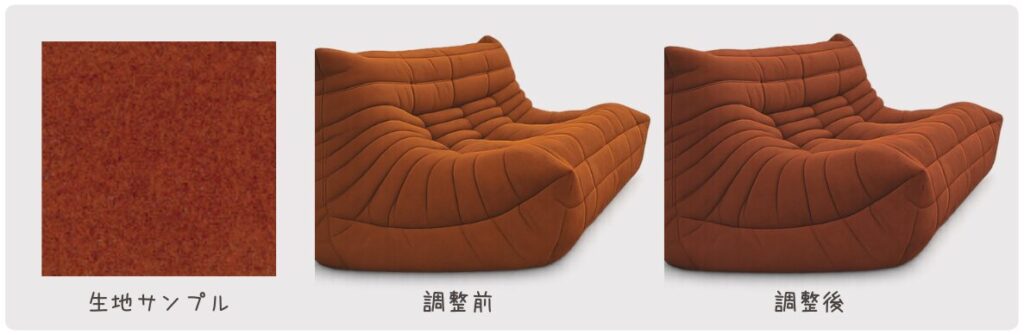 実物と並べて見ると、陰影の出方や生地の立体感には