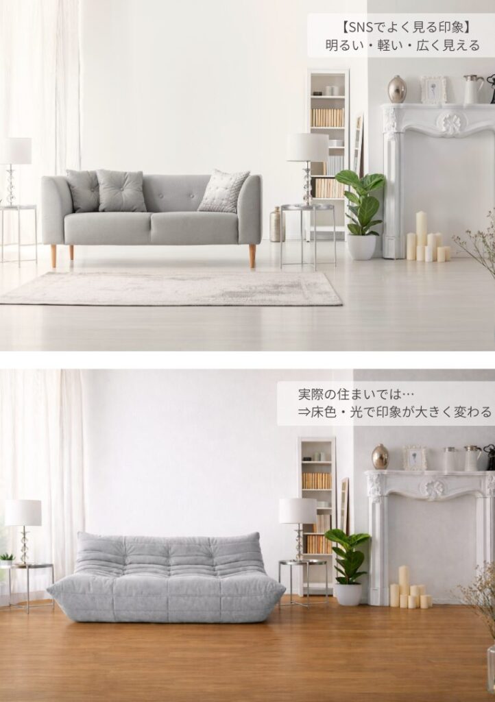 詳しくは【トーゴ(グレー)×床色検証】で実例をまとめています。