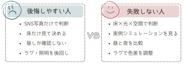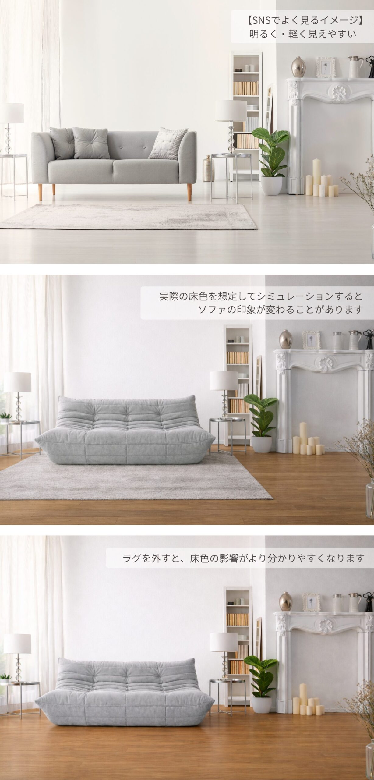 実際の住空間とは床色・光・空間条件が大きく異なります。