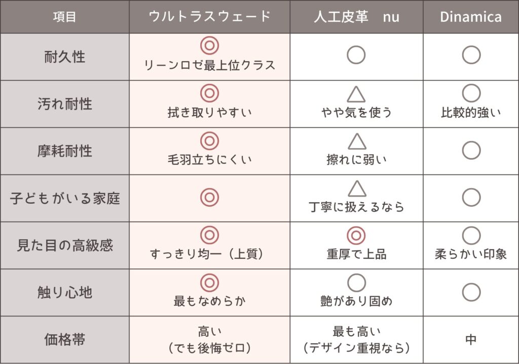 ウルトラスウェードは後悔しにくい生地です。
