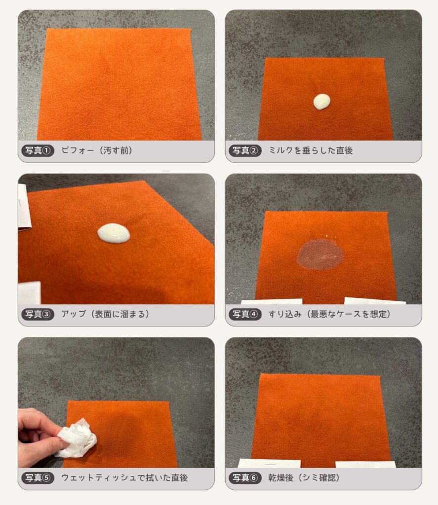 ミルク汚れの拭き取り実験もしてみました。